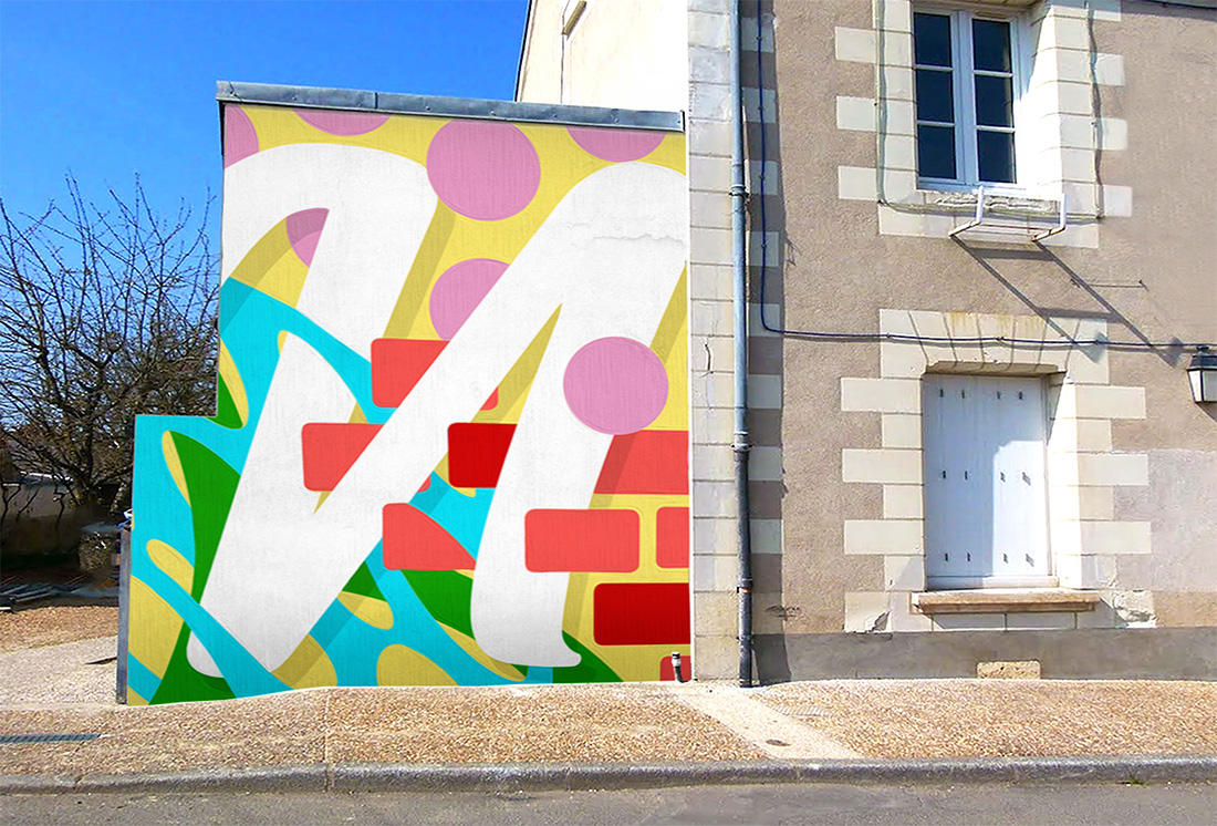 Je propose également des fresques sur murs et façades, de toutes tailles, de la conception graphique à la dernière touche de peinture.